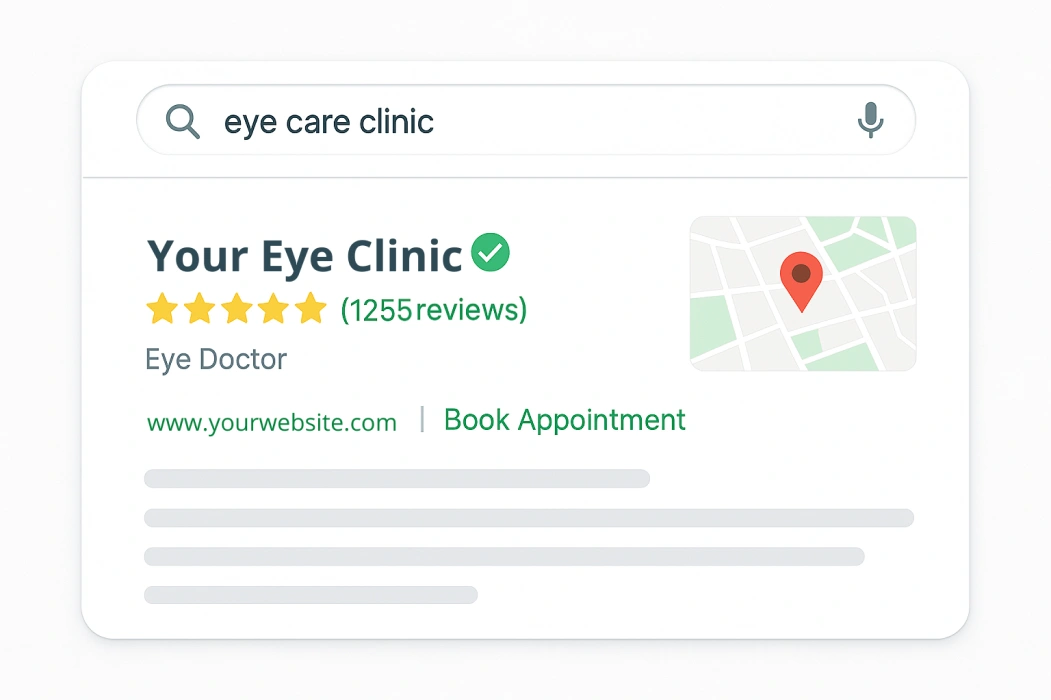 We’ll identify what’s working, what’s missing, and share proven strategies we’ve implemented for eye care clinics to improve bookings and local visibility.